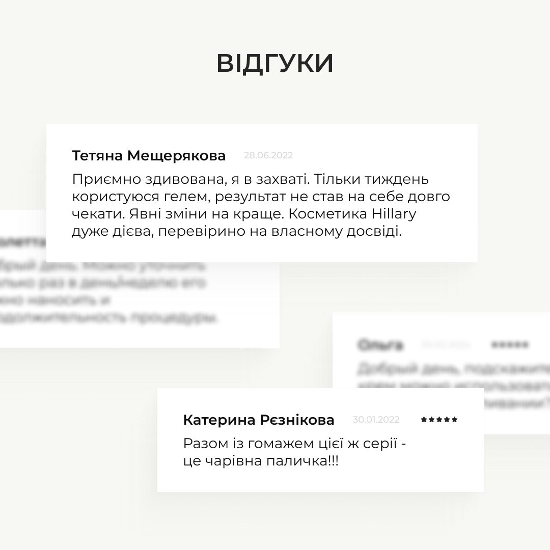 Комплексна дія дає те, чого не дає один засіб — помітне покращення текстури шкіри, пружність і гладкість.