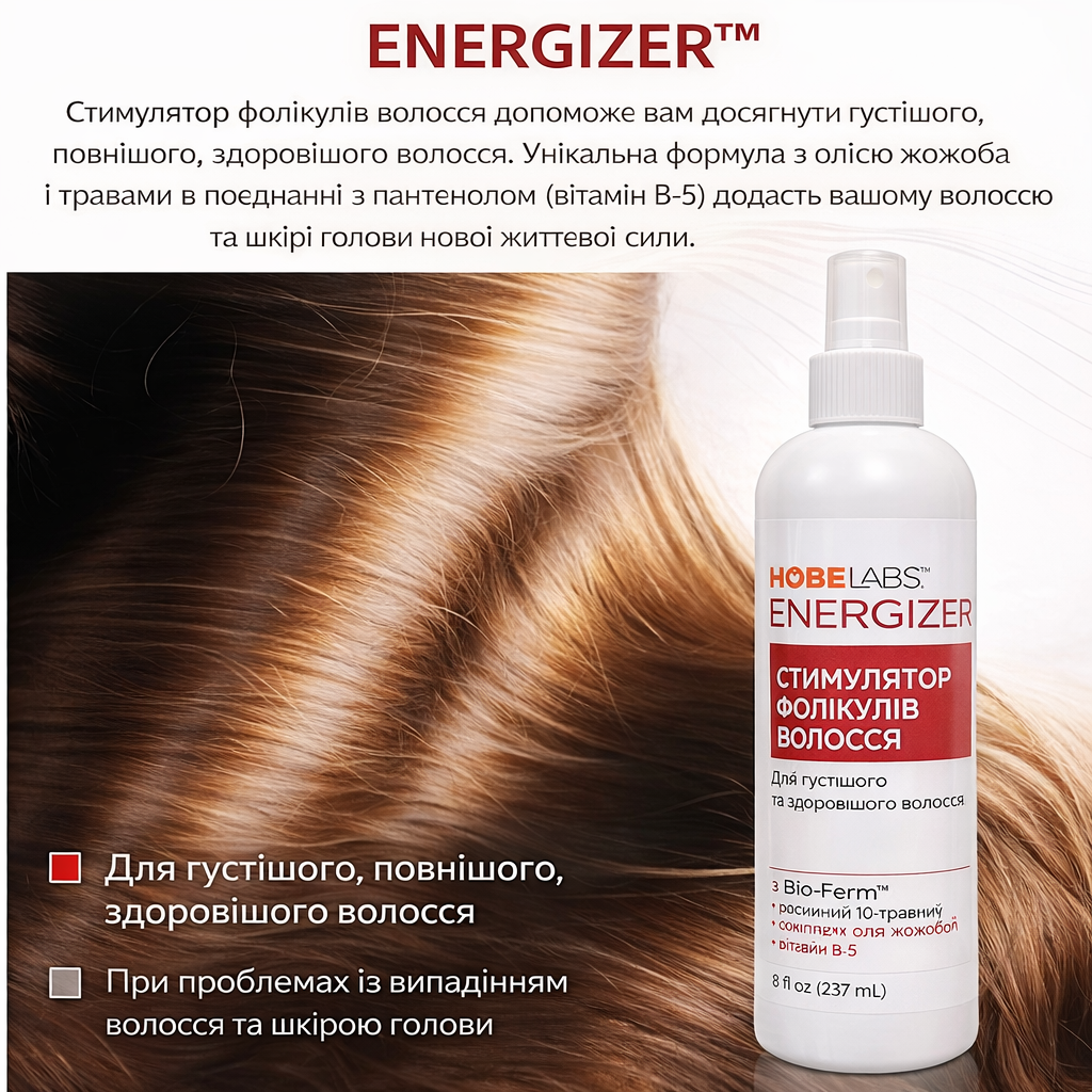 Hobe Labs - американська косметична компанія, що базується в США, яка спеціалізується на виробництві засобів догляду за волоссям. Завод компанії випускає професійні спреї для об'єму, термозахисту, укладання, а також популярні стимулятори росту волосся та шампуні (наприклад, серії Energizer).