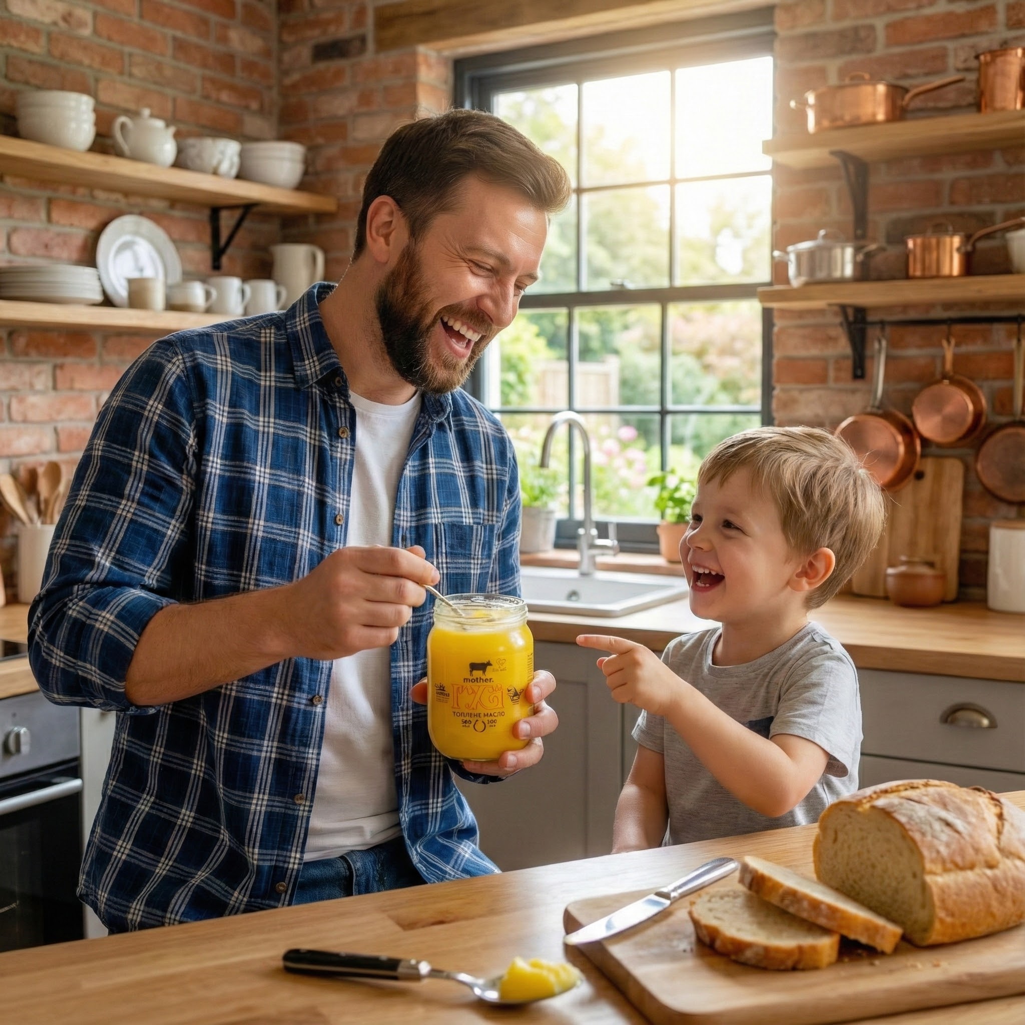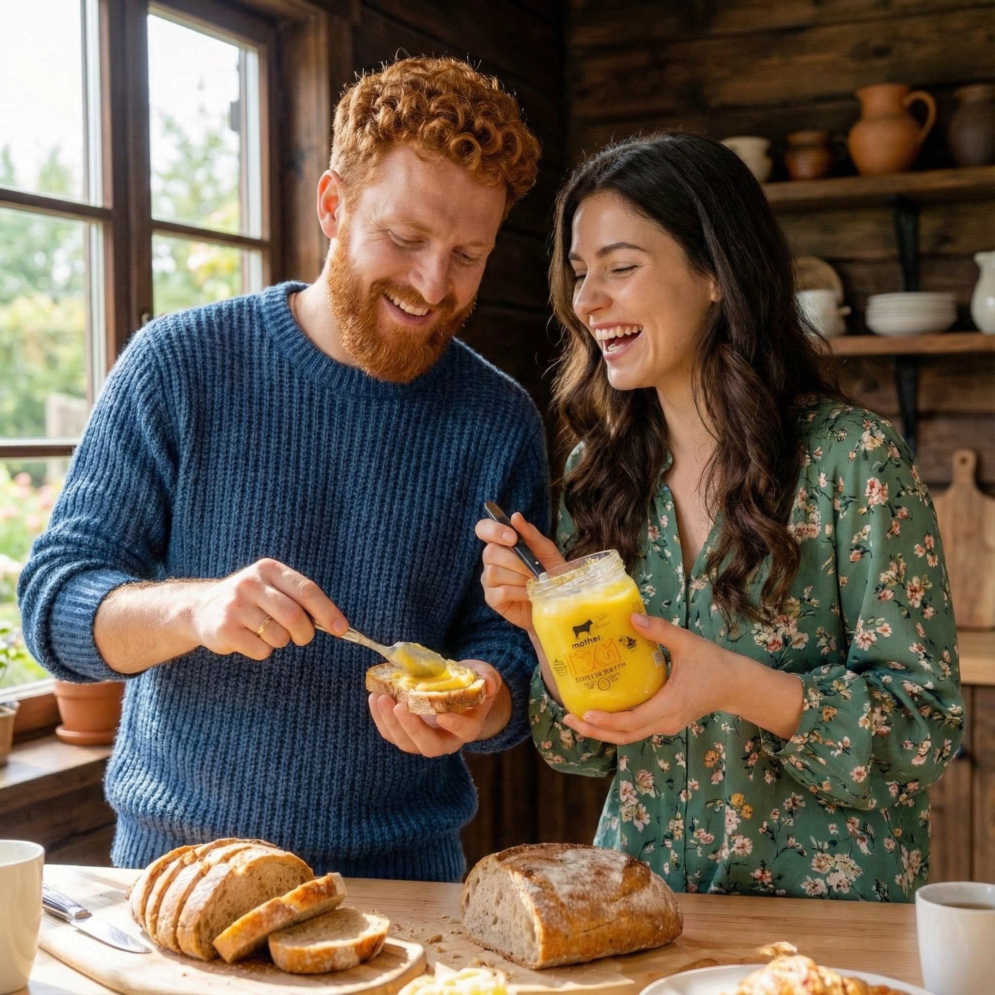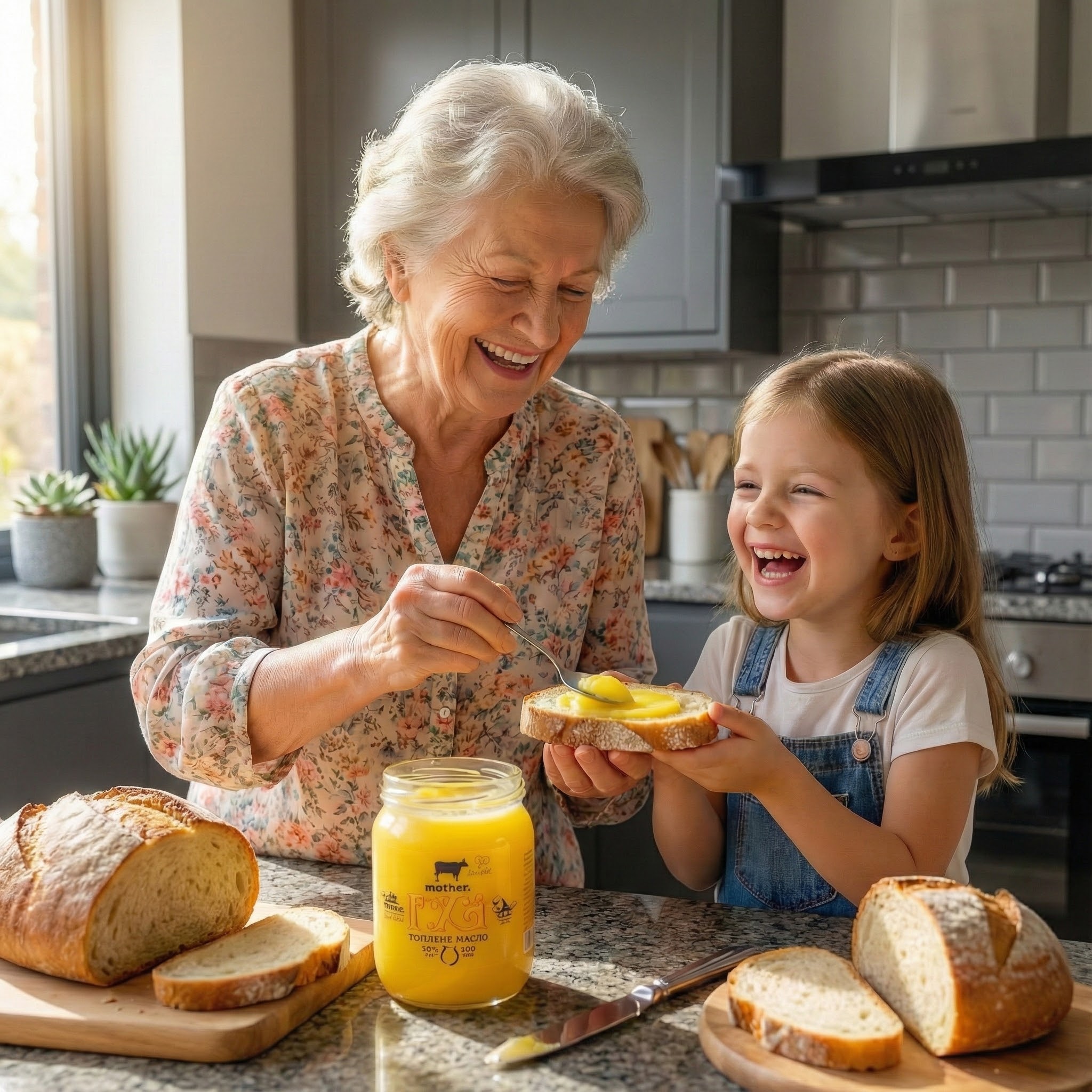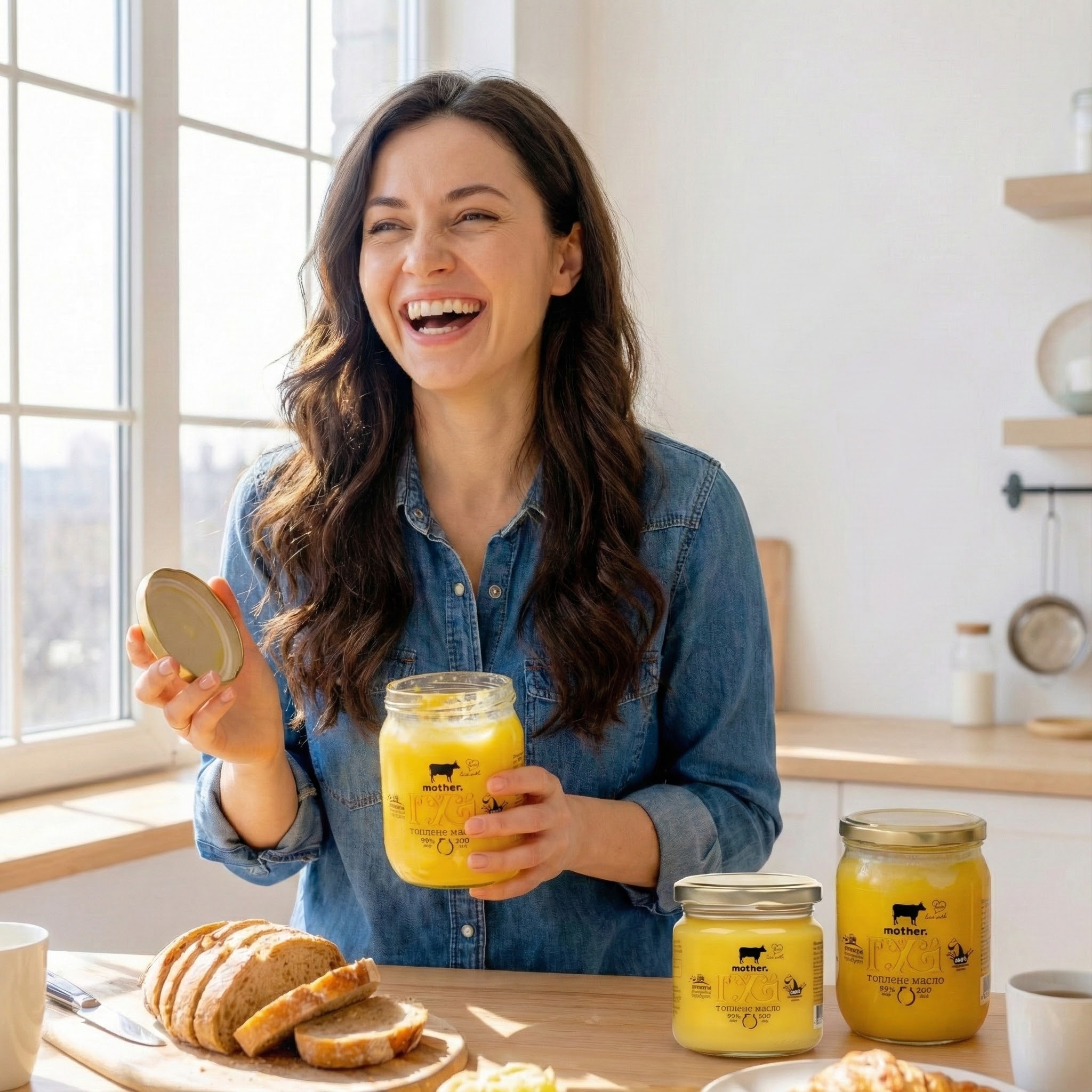 Так ми отримуємо майже 100% чистого молочного жиру, який має високі кулінарні властивості й чудово підходить для здорового та збалансованого харчування.