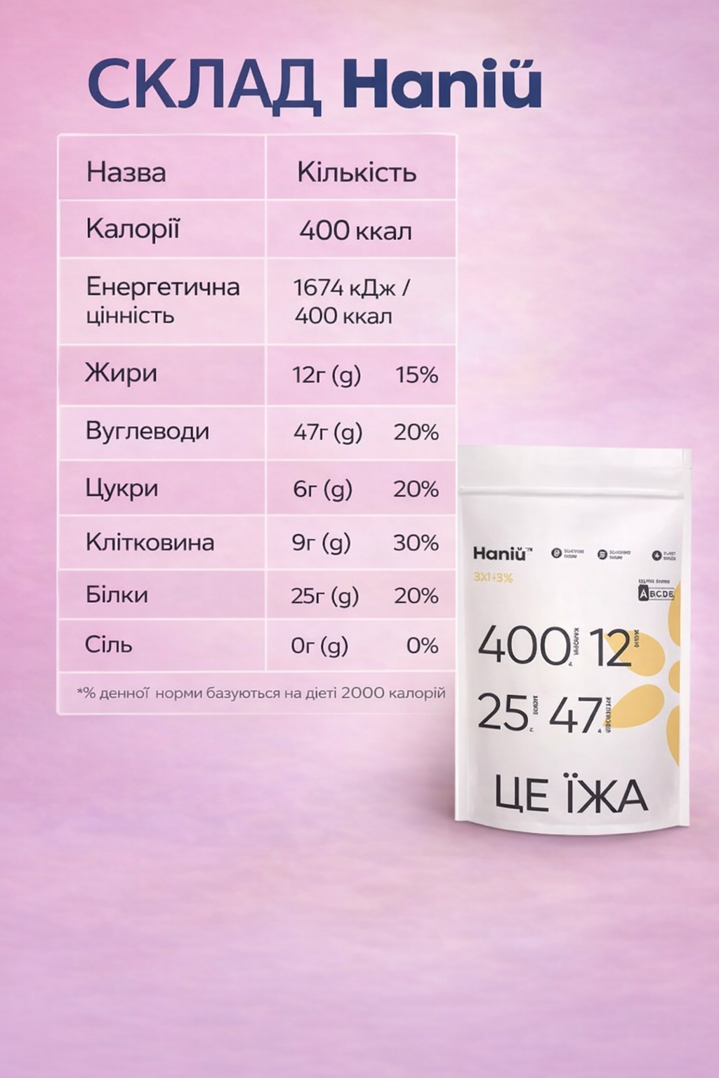 Кількість на 2 таблетки (порція)