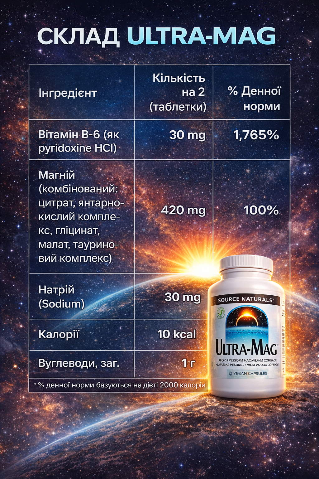 Магній (комбінований: citrate, succinic acid complex, glycinate, malate, taurine complex)